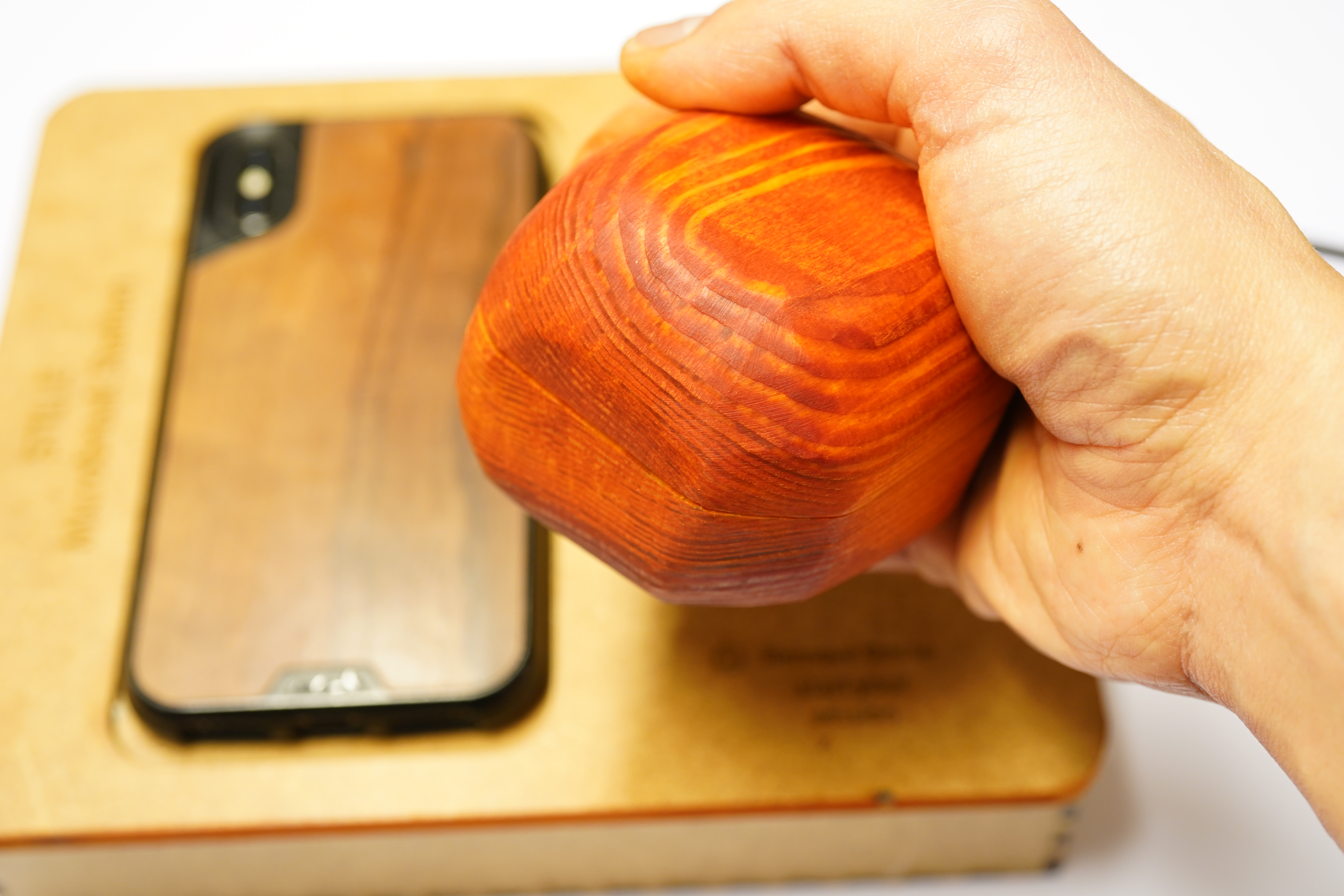 Final prototype of the Microbreak station, with “chestnut” and phone in the backdrop.