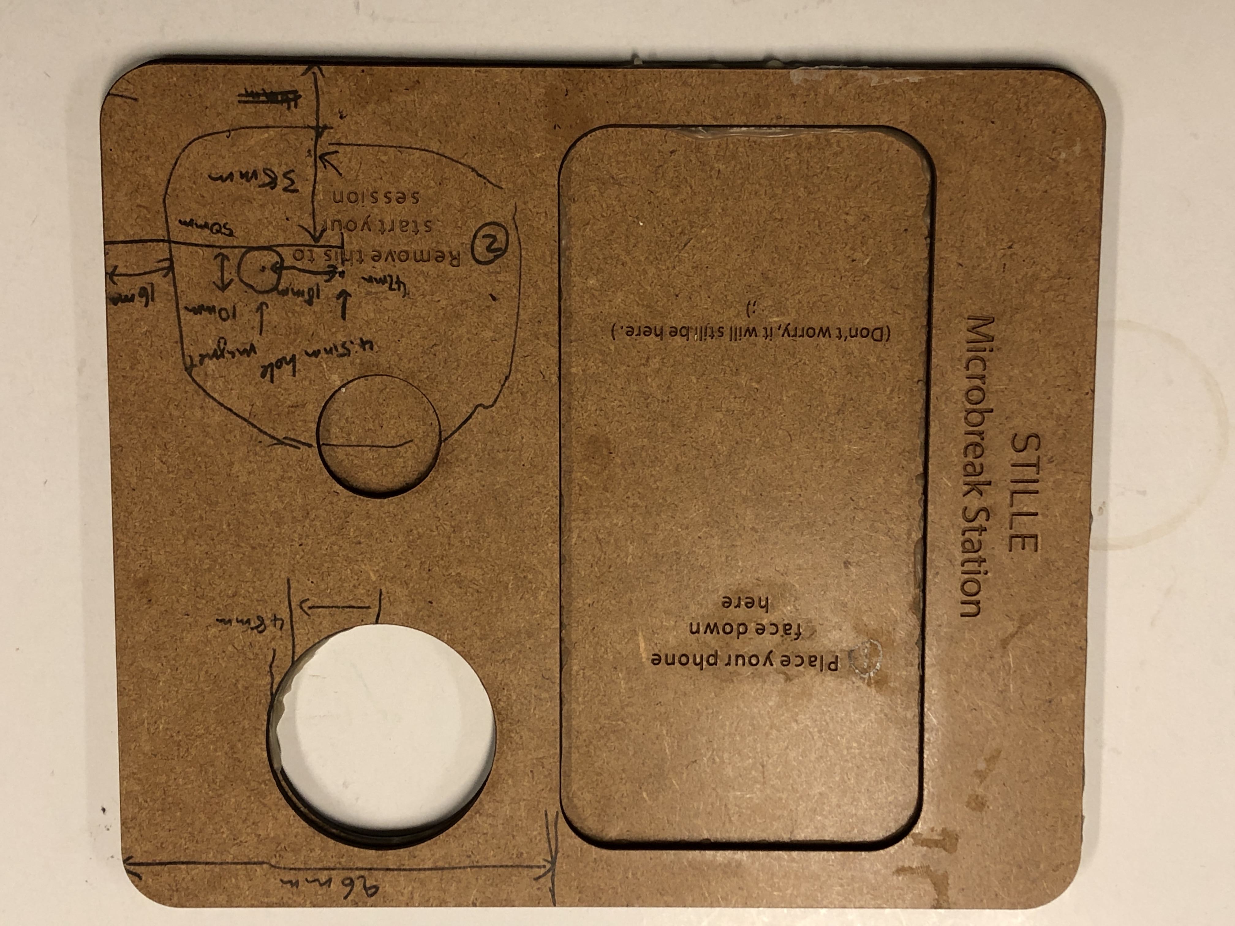 Final prototype of the Microbreak station, with “chestnut” and phone in the backdrop.