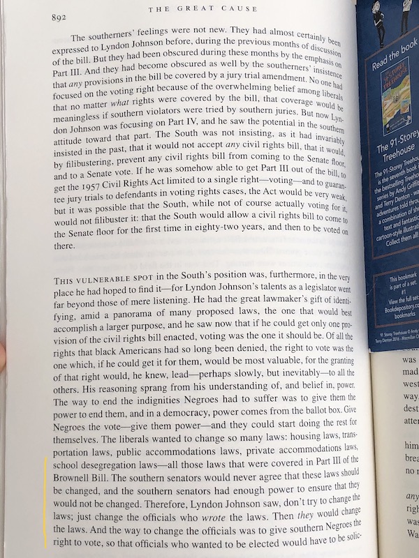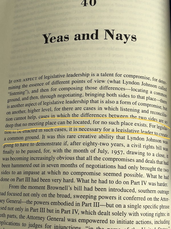 I finished reading Robert Caro’s “Master of the Senate”, which is the history of Lyndon B Johnson‘s time in the US Senate, and had a few learnings about power.