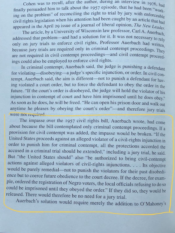 The South wanted a civil rights act that was as toothless as possible, and also saw the removal of jury trials as a threat to the Constitution.
