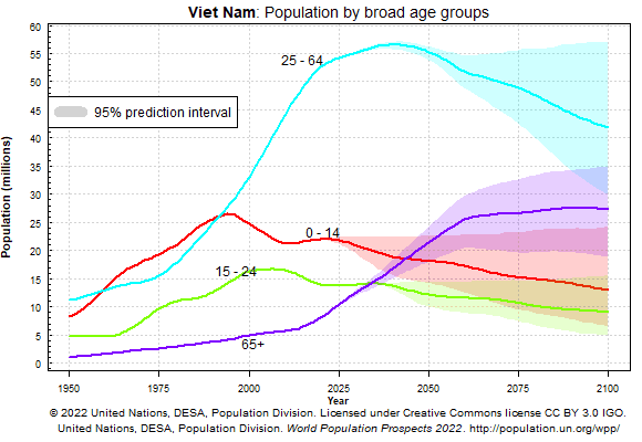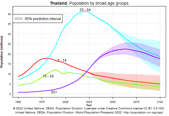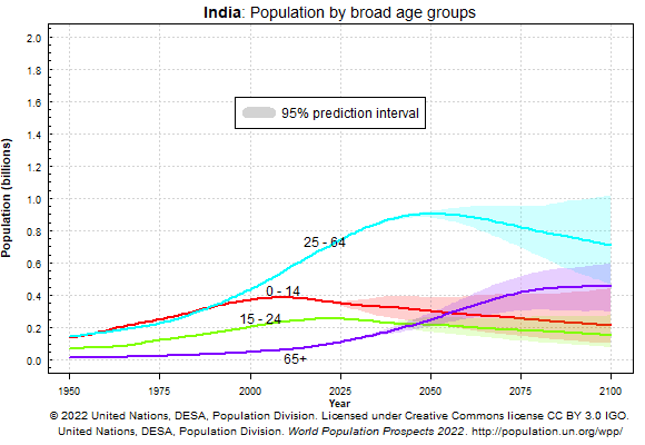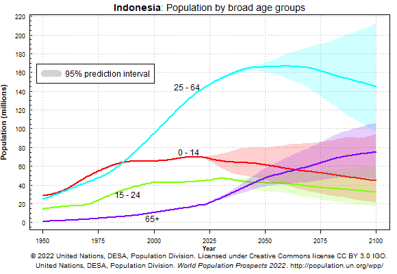But interestingly, even in youthful countries like Indonesia and India, the sheer numbers of elderly (65+ years old) will only increase: based on UNDESA projections, Indonesia’s population of 65+ year olds from 20 million in 2025 to 50 million by 2050; India’s elderly population is projected to grow from approximately 100 million to more than 250 million in the same time scale. (Stats taken from https://population.un.org/wpp/Graphs/DemographicProfiles/Line/356, under the “Population by broad age groups” charts).