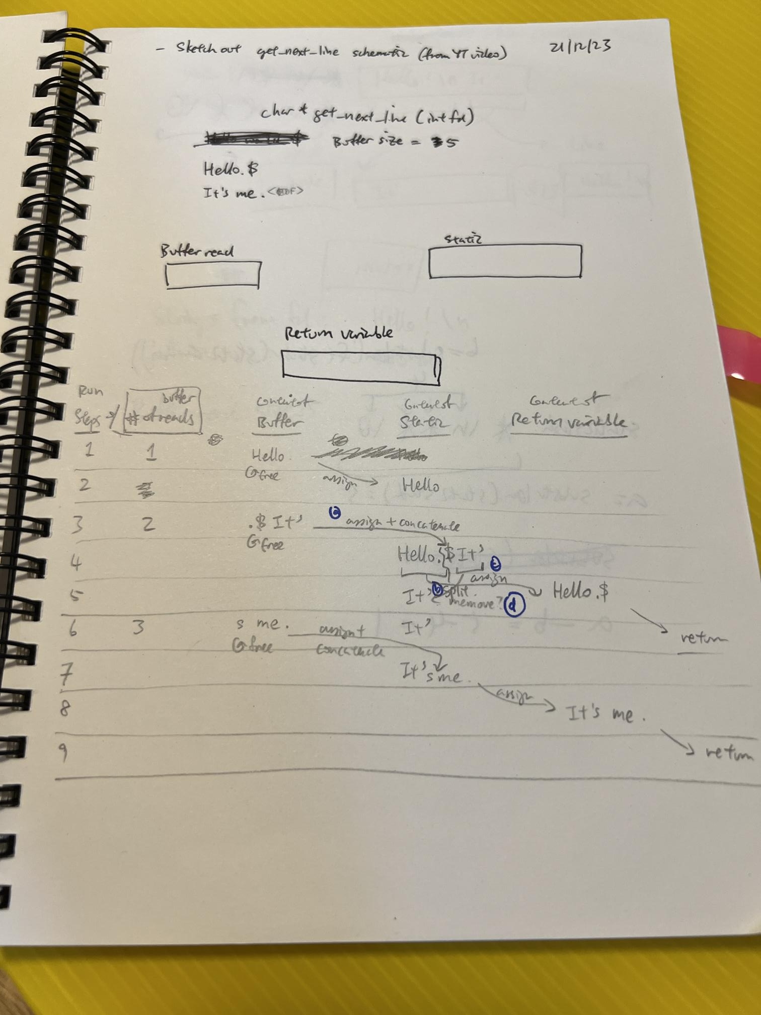 - at the conceptual level of the problem, he commented: “when do you really need the static variable?” I replied that it was needed in order to build the string. And he pointed out that actually, the result and buffer variables remain in the same scope throughout: you only really need the static variable to store the remainder of a returned line. And that remainder will always be equal or less than BUFFER_SIZE. So you can actually just build the string in the returned variable, rather than in the static variable. -lightbulb-