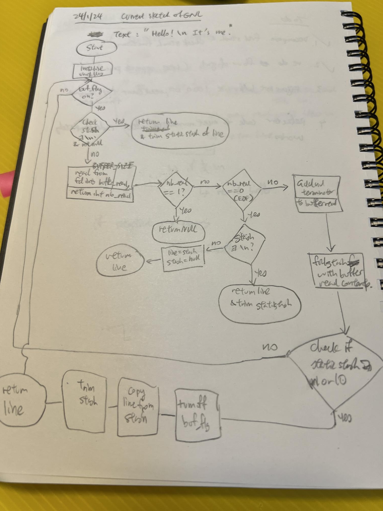 - Just iterating from the groundup without any overall plan: that worked for ft_printf, but has completely, completely failed as an approach for gnl.