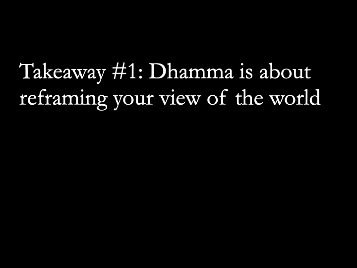 That is basically the Dhamma: it is taking what are conventional truths, and REFRAMING them, learning to think and view them in a different way. that’s the first takeaway for today. # |