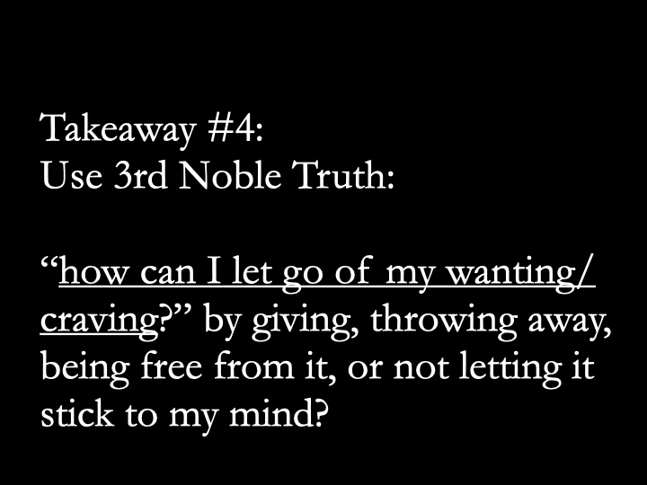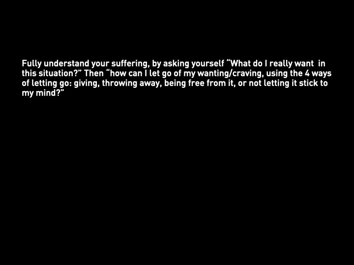 After you identify what is it you really want, you’re then in a better position to actually let go, using the Four Ways of Letting Go in the 3rd Noble Truth to let go of what it is that you want. # |
